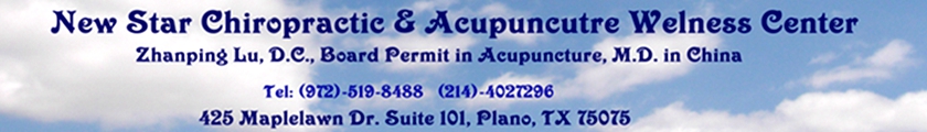 At New Star Chiropractic, Acupuncture & Wellness Center, we provide not only the Chiropractic Care, such as Spinal Adjustment, Arthritis: Frozen Shoulder; Tennis Elbow, Back/Neck/Wrist/Hip/Knee/Ankle Pain, Herniated Disc, Sciatica, Carpal Tunnel Syndrome, TMJ, Whiplash caused by Car Accident, Sports Injury, combined with Acupuncture Treatment to control the inflammation, release muscle spasm, reduce pain, restore the normal function of the body, and Spinal Decompression for Lumbar and Cervical Disc Herniation/Bulging/Protrusion, but also variety wellness Program, such as Allergy (Sneezing / Coughing / Itchy and /or Watery Eyes/Nasal Stuffiness/Swelling/Tightness using NAET technique, Body Detoxification, and Skin Disorder (Acne; Eczema; Hives; Psoriasis; Atopic Dermatitis, Urticarial Vasculitis ), Digestive Disorder (Acid Reflux; Food Addiction; Indigestion; Leaky Gut Syndrome; Diarrhea; Constipation; Stomach Cramps; Candida/Yeast/Fungal Infection; Gallstone, Colitis; Enteritis; Eosinophilic Esophagitis, Gastroenteritis, Proctocolitis) , Respiratory Disorder (Asthma, Bronchitis; Chronic Cough; Difficult Breathing) , E.N.T & Eye (Ear Noise, Ear Infection; Allergic Sinusitis/Rhinitis; Herpetic Angina; Nasosinusitis; Dizziness; Eye Dryness) , Women’s Health (Amenia, Hormone Imbalance, Infertility, PMDD, Menopause Syndrome, HPV Infection), Neurological Disorder (Headache, Migraine, Meniere’s Disease, Sciatica, TMJ, Seizures etc.), Endocrine &Metabolic Syndrome ( Hypertension/Hypotension, High Cholesterol, High Triglycerides, High Blood Sugar, High uric acid/Gout, Anemia, Diabetes, Osteoprosis Prevention; Hyperthyroidism/Hypothyroidism; Prostate Gland ) Nutrition Deficiency (Chronic Fatigue Syndrome; Over weight; Obesity; etc.) Depression & Stress (Anxiety, Depression; OCD; Emotional disorder; Alzheimer’s disease etc.), treated with FEAT and natural healing techniques. We have a special program for children with ADD/ADHD, Autism, Nutrition Deficiency, and Development Delay.
